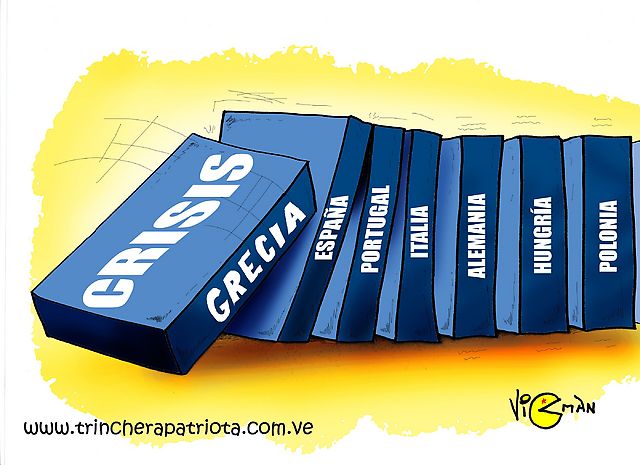 Mientras tanto los bancos en España se están echando a pelear a ver quien coge más de esa ayuda o quien demuestra no necesitarla, sus empleados están temblando por ver a quien señala con el dedo el directivo de turno para pasar por la guillotina del despido y la economía se diferencia por países, la misma moneda, aparente mismo valor, diferente coste real... ya que un griego un italiano o un español ganan menos por el mismo trabajo de un alemán, de modo que su euro ha costado mas trabajo de ganar, y se puede adquirir menor cantidad de utilidad con él... es algo totalmente impensable, pero la caída de la economía, la sociedad movilizándose, todo eso dio pie a los acontecimientos del fin de la democracia en prácticamente todo el continente, y lo peor es que nadie hace nada por remediarlo, pero es natural, tanto políticos como pueblo llano estamos pendientes de la Eurocopa, ¿quien ganara? ¿podremos vencer a Irlanda? ¿por que Del Bosque no pone un delantero centro? ¿os habéis enterado que Nadal ha ganado?, como ya dijeron unos grandes artistas de Pucela, "Es el país de Don Balón"